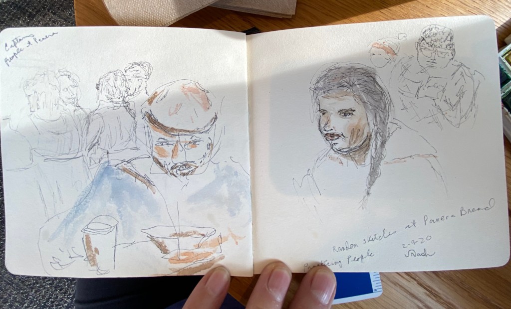 Panera Bread on a Sunday morning is a great place to get some practice sketching random people. I am going to go to various public places and capture a collection people. The object is to not only to get better at portraying their gestures or moods, but to tell a story. The above sketch is only one paragraph of the story I aim to tell. A collection of paragraphic sketches will hopefully start to form a story.