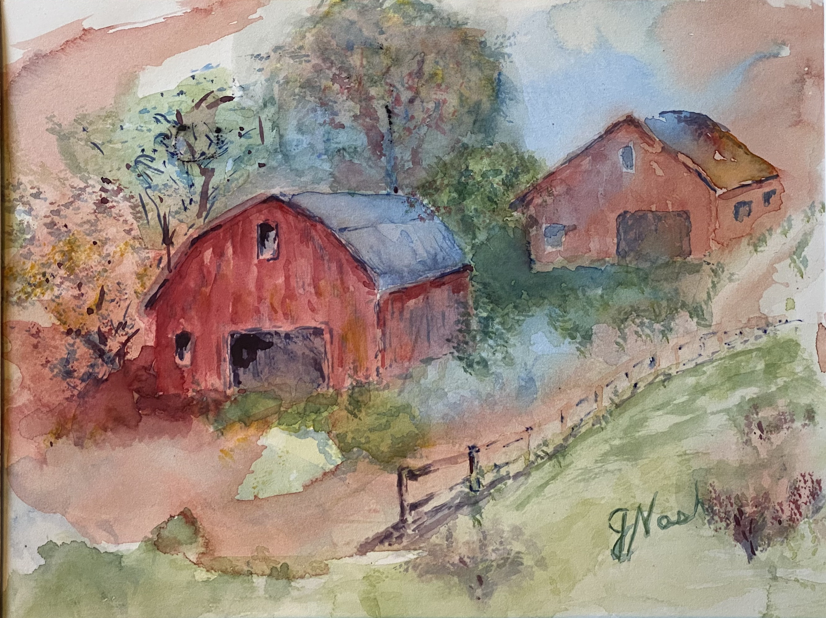 “Michigan Barns”, Watercolor on 9″x12″ 40 lbs paper by June Nash