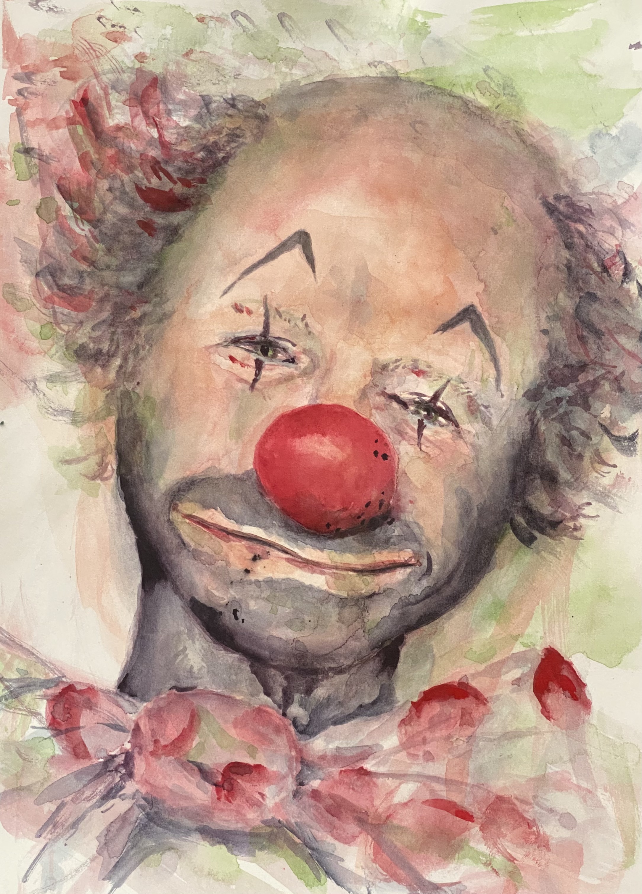 I had a lot of fun painting this clown. I worked from a plain photograph of Francis and, using an image of Red Skeleton, converted him into a hobo type clown. I have some photos that I want to do the same thing to, but of my grandsons, not hobos, but clowns. But that is a future adventure.